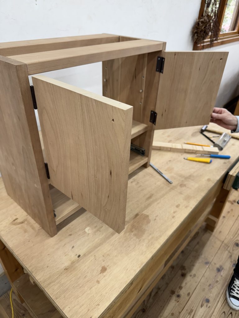 ブラックチェリーで作ったキッチン収納を製作、お納めしました。