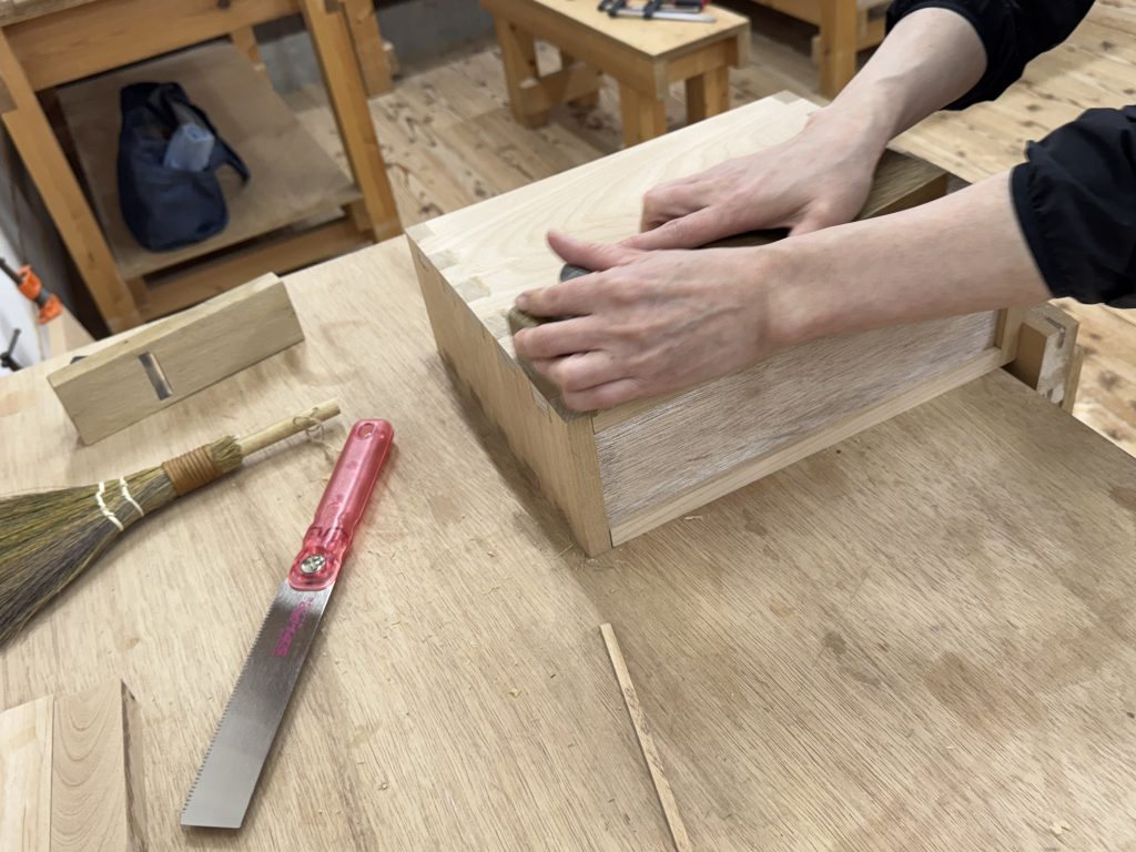 家具木工は決して簡単ではありませんが、一歩一歩進んでいけば誰にでも出来ます。木工教室に興味のある方は ↓