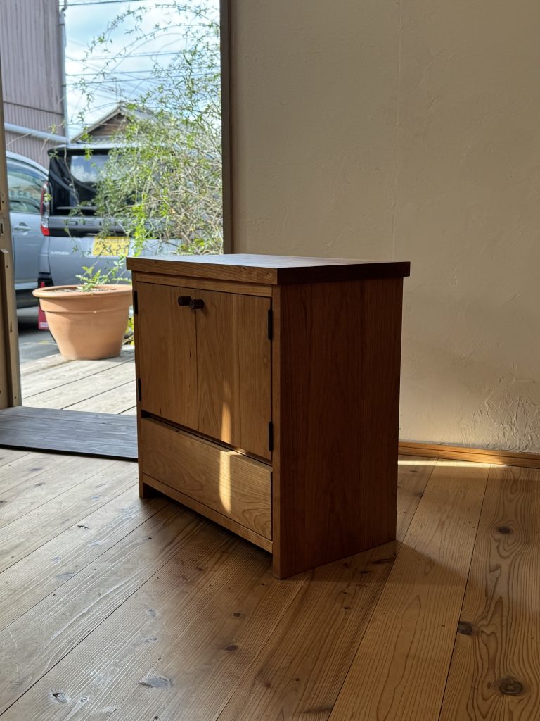昨年から取り組んでいたキャビネットも完成しました。こちらは総無垢。