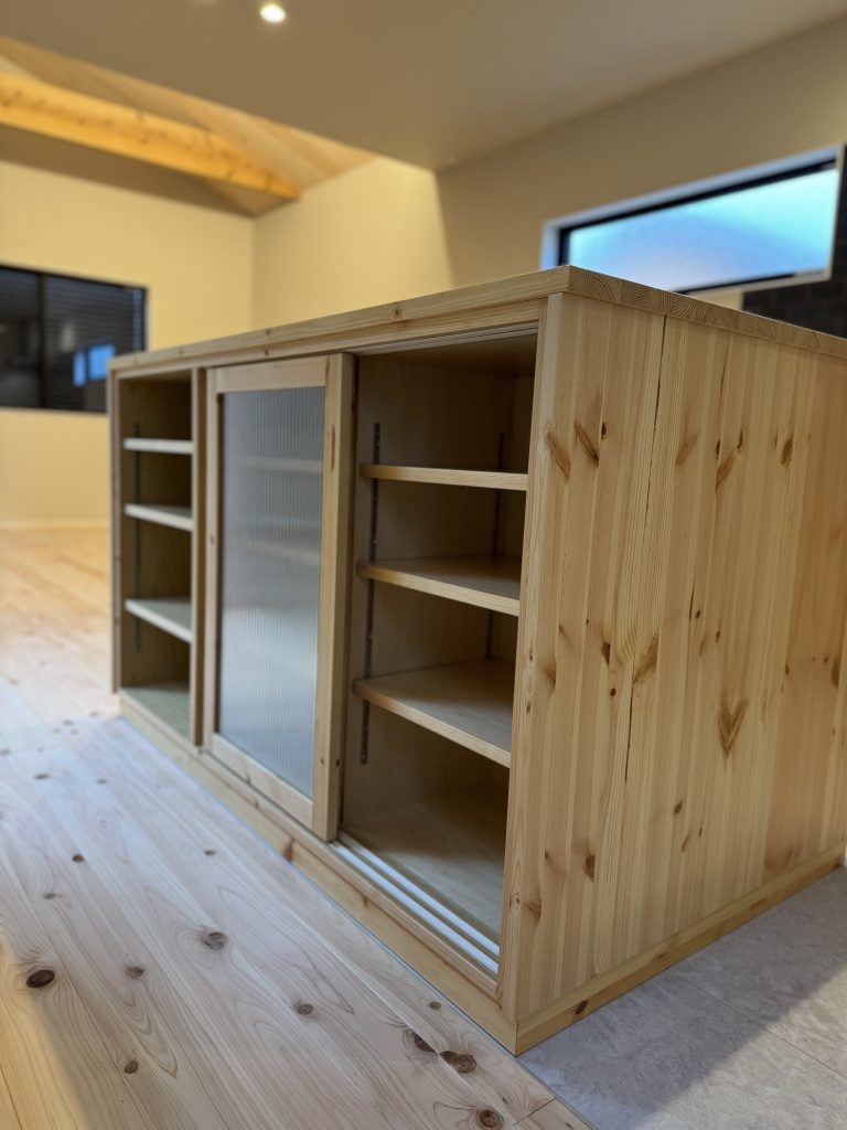 素材はパイン。引き戸はモールガラスを誂えました。