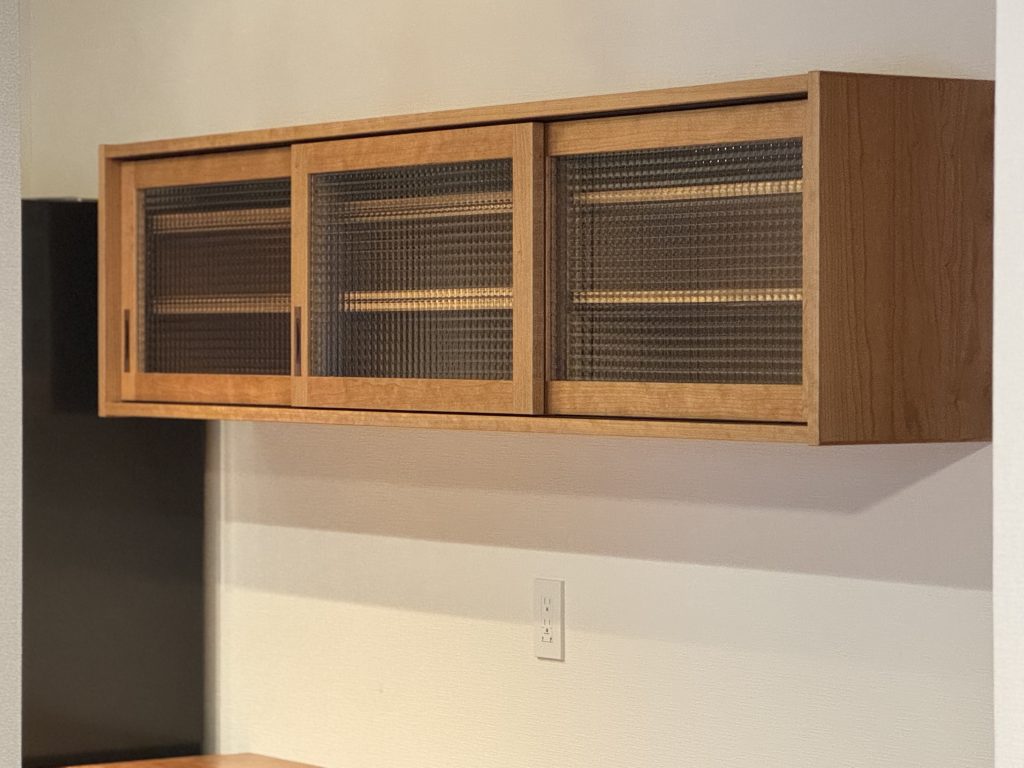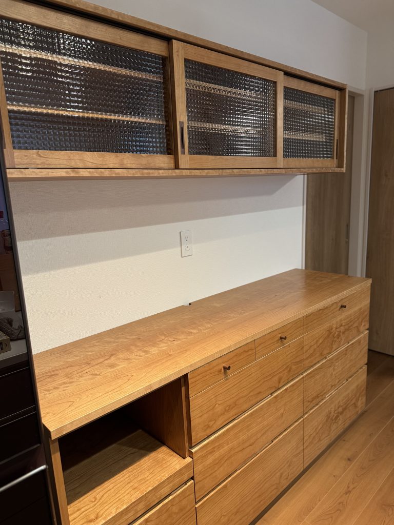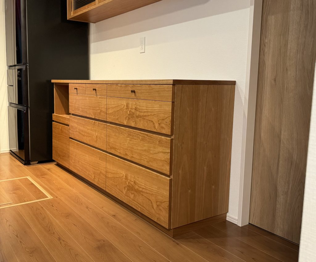 ブラックチェリーで作ったキッチン収納を製作、お納めしました。