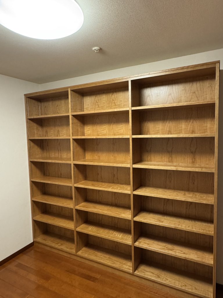 ブラックチェリーの大型本棚を製作、お納めしました。