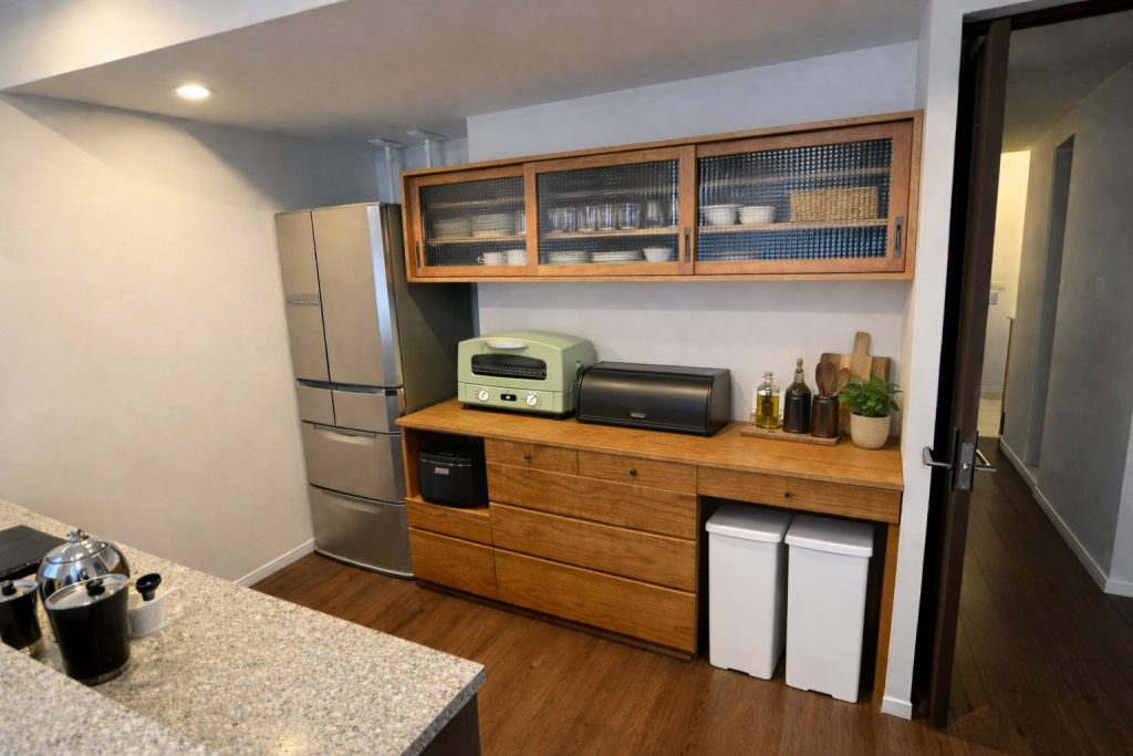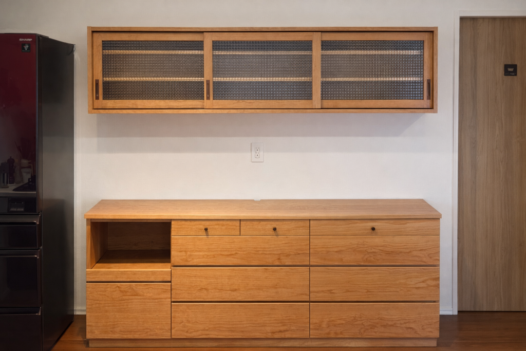 キッチン収納・食器棚・カップボード。キッチン回りの収納をお客様のニーズに合わせフルオーダーで製作します。